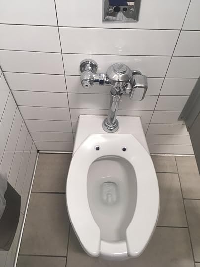 I meant to slip quietly out, but when I opened the stall door, there was a woman right there, ready to claim this stall the instant I vacated it.