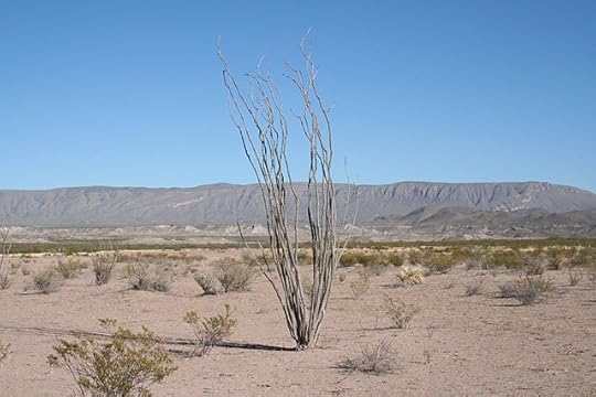 Ocotillo, Big Bend National Park, TexasA well-meaning ranger, Captain Henry, complicates matters by saving the life of Otero’s infant son and giving him to the care of a childless couple, Michael and Clementine. When Otero abducts Clementine and his son, there follows a long chase into the Big Bend country, an arid and unpopulated desert region along the Mexican border.Among this party of soldiers and civilians, lives are lost in firefights with Otero’s men. When Clementine is found, most of the surviviors turn back, leaving Colum and a handful of others to follow Otero. Among them are the generous and fatherly Captain Henry and the mysterious Lohman.