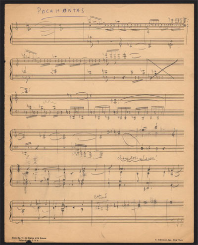 Pocahontas by Elliott Carter (manuscript sketch), 1939(?). Library of Congress.