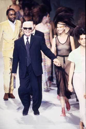 Another rare photograph from Bloomsbury’s Fashion Photography Archive of the man himself taken during the finale of his Spring/Summer 1997 show shows his sunglasses and slicked-back hair are present as ever. Already a major player in the fashion world at this time, his dedication to fashion is still unparalleled. Turning eighty next year, he maintains his position as a doyen of contemporary style and remains a formidable fashion force to be reckoned with.Emily Ardizzone is the Editorial Assistant at Berg Publishers, an Imprint of Bloomsbury Publishing, with responsibility for the Berg Fashion Library and other fashion projects including the recently acquired Fashion Photography Archive. Read previous Berg Fashion blog posts.