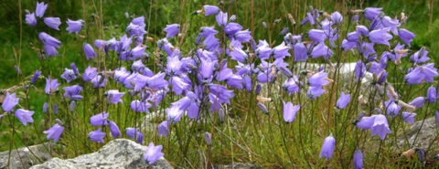 If we disregard some fanciful suggestions (hare from hurry, from harry, etc.), the main question that puzzled people was: hare-brained or hair-brained? But first let me mention the little-known fact that in an English translation of Apophthegmes of Erasmus, we read: “March-hare is marsh-hare.” This is a product of folk etymology. Here is another statement from that discussion: “There was formerly a vague notion that abundance of hair denoted a lack of brains, and from this idea arose a proverb, ‘Bush natural, more hair than wit’.” Proverbs on the theme “long hair, short wit” are indeed common. Much to the credit of our old lexicographers, they did not fall into any of those traps, spelled the word correctly and let the proverbial hare remain intact. To celebrate the animal, we posted a field of harebells as the header to this post. Whether hares are particularly fond of harebells is a moot question.