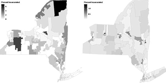 Substantial research exists showing how prison populations are used to skew representation away from urban areas in favor or more rural ones. The maps below illustrate how New York’s ban on prison gerrymandering altered the distribution of incarcerated residents across the state. As such, we can expect substantial changes in the electoral environment in other states that have enacted similar reforms.