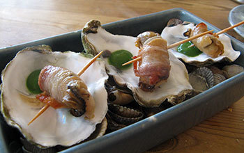 And now, as promised, a few food idioms for dessert. Angels on horseback: “oysters rolled in bacon and served on toast.” The phrase also occurred (rarely) “as a species of mock-heroic commendation.” In Winchester, that is, in Winchester College, it denoted excellence (1898-1899). The phrase and especially the dish never lost their popularity. Brass knockers: “the next day remains of a dinner party.” According to some knowledgeable people, this was a folk-etymological alteration of Hindustani basi “cold” and khana “food, dinner” (1878). Bubble and squeak: “fried beef and cabbages.” According to a cook who was asked about the phrase, the dish ought to be made of boiled beef and cabbage fried, and she supposed it acquired that name from the ingredients in the first instance bubbling in the pot, and afterwards squeaking in the pan. My authority is The Gentleman’s Magazine for 1790, but the OED has a 1762 citation. Wikipedia gives a somewhat different explanation of the idiom, but, regardless of etymological niceties, the dish is still widely known.