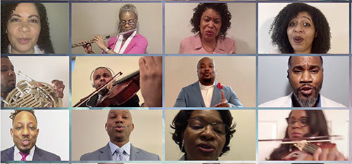 Dr. Joyce Garrett used a similar strategy with the choirs she directs at Alfred Street Baptist Church in Alexandria, Virginia. “We have all ages and levels of ability participate because you want to include everyone you can, connect with all these wonderful people,” she explains. “If some don’t have the best voices, we may not use their audio as much, but we include all their faces in the video.”