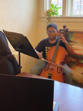 Enriching Lives Through Music students’ public schools closed so suddenly that some didn’t have a chance to bring home their instruments, which are usually stored at school. The program’s cello teacher managed to retrieve the instruments so parents could come, one at a time, to pick them up. She also tunes instruments for families. A parent can come into a waiting room at the program’s office and drop off the instrument. The teacher takes it into a different room to tune it, and then brings it back to the waiting room.