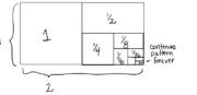 What does this sum equal? Note that you might rewrite each term in the sum as the areas of the increasingly smaller squares and rectangles in the following sketch: