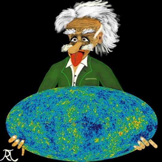 Image credit: Albert Einstein by Alvaro De Rújula. The visible universe CC-00 via WMAP/NASA. Used with permission.