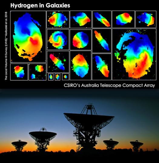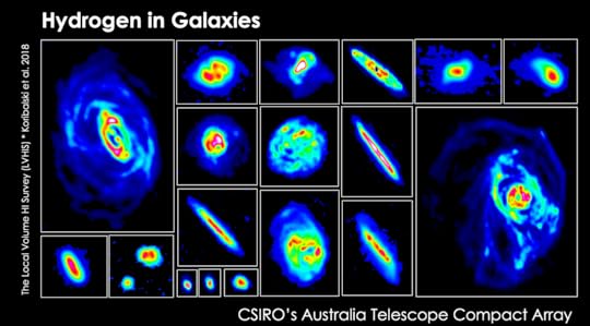 Even larger hydrogen studies are now under way with CSIRO’s Australian Square Kilometre Array Pathfinder (ASKAP), a 36-antenna radio interferometer in Western Australia. This research forms part of the WALLABY project, led by myself and Lister Staveley-Smith. Early Science with an array of 12 to 16 ASKAP dishes, each equipped with brand-new Phased-Array Feeds delivering a field of view of 30 square degrees on the sky, is starting to provide similar maps to LVHIS, but for many more galaxies and a larger volumes of space.