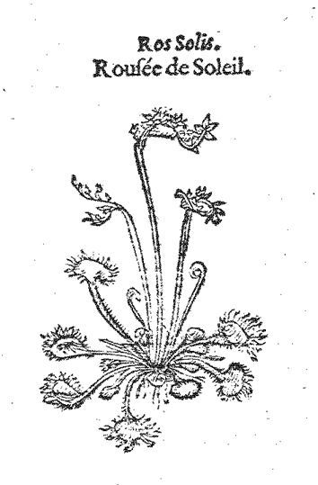 Medical devices often deliver medicines, and as evolutionary biologists uncover the biochemical secrets by which carnivorous plants kill and digest prey, they have also revived interest in their pharmacopeia. Extracts of sundews (Drosera species) have been used since at least the 16th century to treat respiratory diseases, including tuberculosis. A sundew was the first carnivorous plant to be illustrated in Rembert Dodoens’ 1554 L’Histoire Des Plantes, although Dodoens did not remark on its medicinal properties. In 1636, the English botanist John Gerard summarized its known ‘vertues,’ in his Herbal, including its use for `treating consumption.’