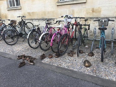 All the ducks! When you walk through the main entrance of OUP there is a fountain in the middle of the quad, home to lots of ducks and ducklings every year. When you look outside in summer, someone’s always on the grass trying their best to get a good picture of them. Once a group of ducks (a safe, ironically) trapped me, falling asleep around my bike—it took me ages to wake them up so I could move around them and go home.
