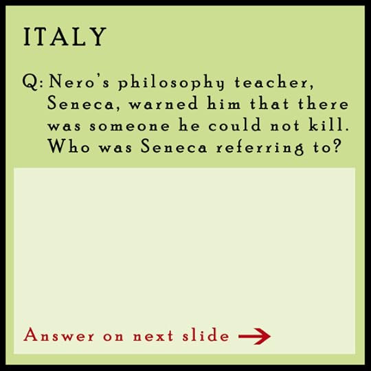The next emperor was Galba. But Seneca was not claiming that Galba could not be killed. Galba only avoided Nero’s intention to kill him by good fortune. Seneca was making a logical point: ‘However many you put to death, you will never kill your successor.’ Seneca was correct. Before Nero was succeeded, however, he succeeded in arranging Seneca’s death.