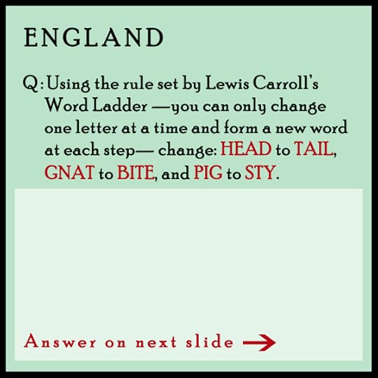 Based on Lewis Carroll’s methodology, the best way to get from “Head” to “Tail” via a Word Ladder is: HEAD, HEAL, TEAL, TELL, TALL, TAIL.