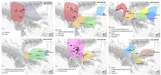What we managed to capture were properties of highly interconnected systems based on copper supply networks that also reflected organisation of social and economic ties between c. 6200 and c. 3200 BC. The intensity of algorithmically calculated social interaction revealed three main groups of communities (or modules) that are archaeologically, spatiotemporally, and statistically significant across the studied period (and represented in different colours in Figure 1). These communities display substantial correlation with at least three dominant archaeological cultures that represented main economic and social cores of copper industries in the Balkans during these 3,000 years (Figure 2). Basically, such correlation shows that known archaeological phenomena can be mathematically evaluated using modularity approach.