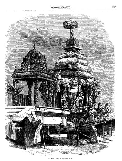 “Juggernaut” is the Anglicized name for the Hindu god Jagannath, the “Lord of the Universe.” Jagannath, a form of the god Vishnu, presides over a massive temple in Puri, India alongside his brother Balabhadra and sister Subhadra. The most famous ritual at the Puri temple is the Rath Yatra. During the Rath Yatra the wooden forms of the gods are ceremonially placed on large towering carts, or chariots, and pulled through the streets of Puri by devotees. “Juggernaut” entered the English language in the early nineteenth century as colonial Britons in India encountered Jagannath and his chariot and tried to make sense of what they were seeing.