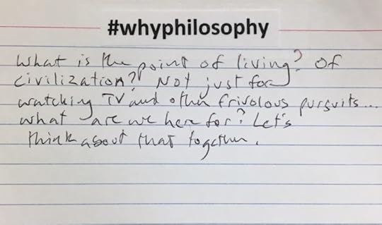 "What is the point of living? Of civilization? Not just for watching TV and other frivolous pursuits...what are we here for? Let's think about that together."
