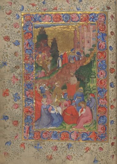 The caption traditionally given to this image’s reproduction in the many books it has graced is “Chaucer reading from a book”. But, as Derek Pearsall put it gently, with characteristic astringency, in a landmark article on this image, “the book from which ‘the Poet’ is supposed to be ‘reading’ is not at all obvious in the picture since it is in fact, not there”. This Chaucer is not a writer but a declaimer or reciter and, given the location of the picture, as the frontispiece to this deluxe copy of Troilus and Criseyde, what he is almost certainly meant to be reciting is Troilus.