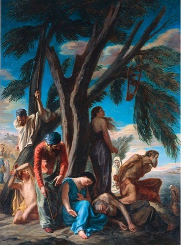 Ferdinand Victor Eugène Delacroix was the leading French Romantic artist, best known for his 1830 painting, Liberty Leading the People, with its unforgettable image of the bare-breasted woman rallying forces behind the French tricolor. His depiction of Psalm 137 was commissioned for the library of the Palais-Bourbon in Paris: “A weeping family, seated on the bank of a river, sadly contemplates the water while thinking of the distant fatherland.”