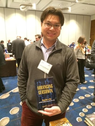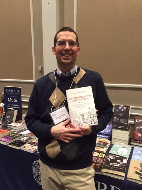 Doug Shadle poses with his first book, Orchestrating the Nation.