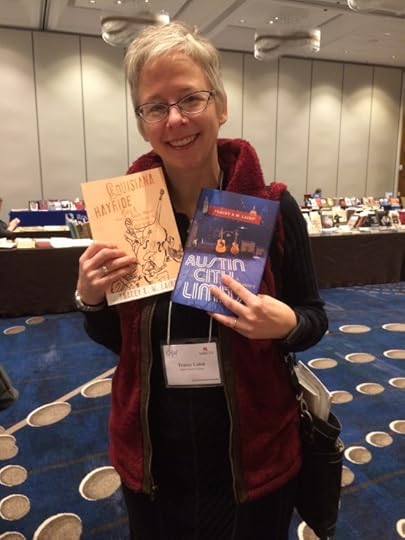 Tracey Laird holds two of her books: Austin City Limits and Louisiana Hayride.