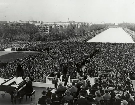 On Easter Sunday, Marian Anderson, the African American contralto, performs a free twilight concert at the Lincoln Memorial. Her performance was arranged after the Daughters of the American Revolution denied her access to Constitution Hall because of her race.