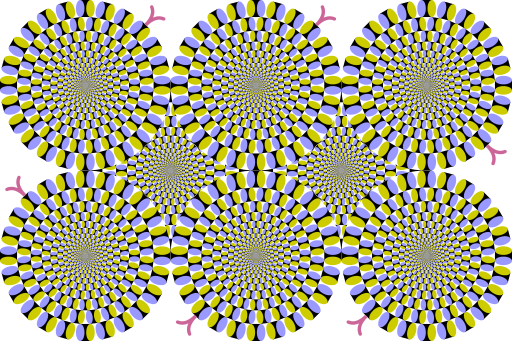 This illusion has recently been shown to work on other animals too. A recent study trained fish to discriminate between motionless or moving stimuli. When they were then shown an image of the rotating snakes illusion the fish categorised the stimulus as moving. Rather more observational video evidence shows that kittens are also fooled by this illusion.