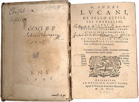 Image: “Lucanus, De bello civili ed. Pulmann (Plantin 1592), title page” by Aristeas. Public domain via Wikimedia Commons