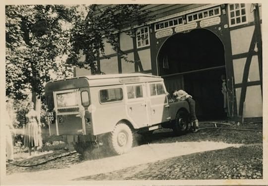 Land Rover at Kuindorf, Susanne’s ancestral home in Germany, on the way to India in 1956. She is at the rear and cousin Britta at the front washing the car. Image courtesy of Lloyd Rudolph and Susanne Rudolph.