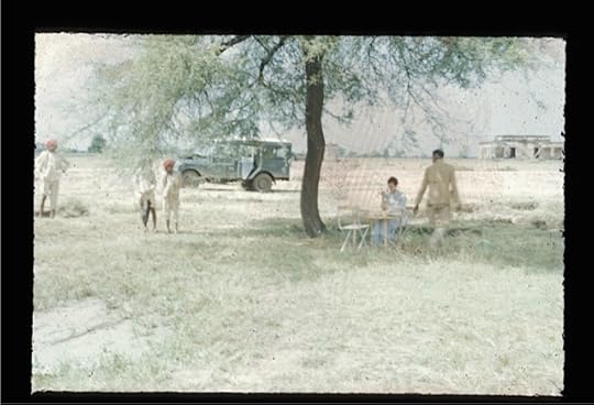 Land Rover in Rajasthan, 1956. Susanne seated at picnic lunch table. Image courtesy of Lloyd Rudolph and Susanne Rudolph.