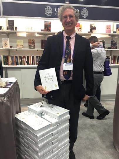 Marc Zvi Bretter holding the new edition of the Jewish Study Bible, which he co-edited