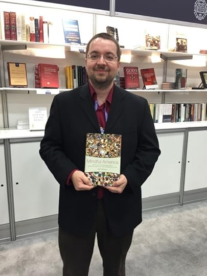 Jeff Wilson holding a copy of his book, Mindful America: The Mutual Transformation of Buddhist Meditation and American Culture
