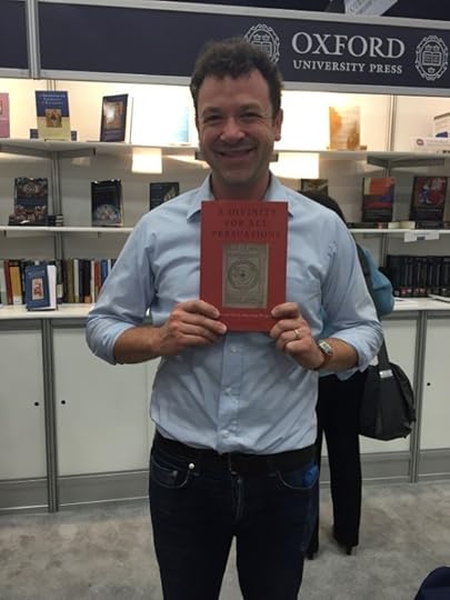 T.J. Tomlin holding a copy of his book, A Divinity for All Persuasions: Almanacs and Early American Religious Life