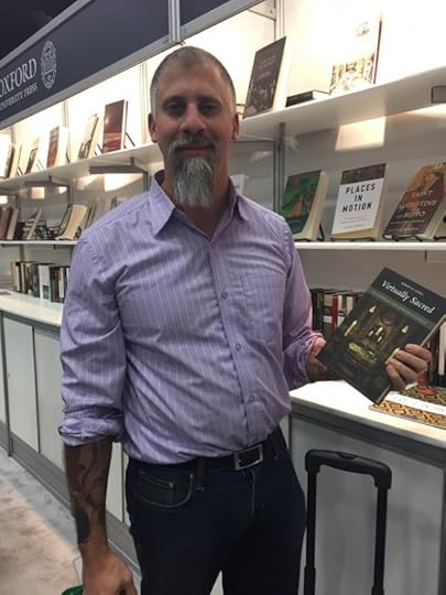 Robert Geraci holding a copy of his book, Virtually Sacred: Myth and Meaning in World of Warcraft and Second Life