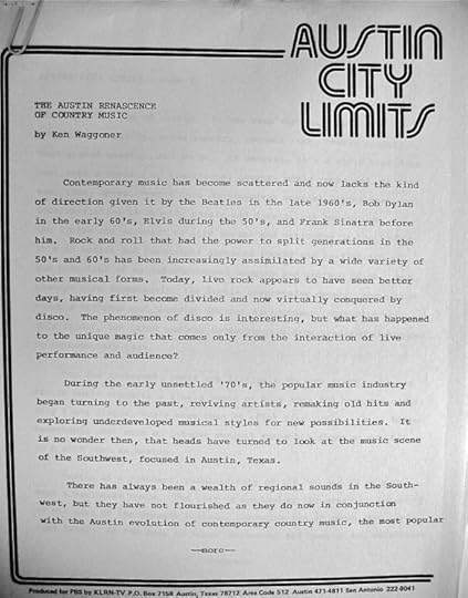 First of 5-page early press release that position Austin City Limits within the “Austin Renascence of Country Music.”
