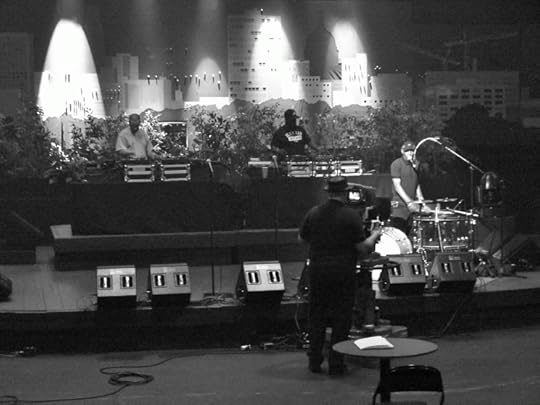 In a photo taken during Mos Def’s rehearsal, the paint and lightbulbs screwed into the faux-Austin backdrop look so much different than they do on TV.