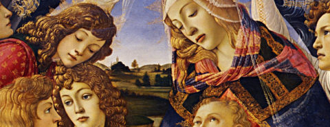 Sandro Botticelli’s Madonna of the Magnificat, for example, portrays Mary as a stylish blonde Florentine aristocrat, surrounded by refined angel/courtiers as she coolly pens the Magnificat with one hand and dandles the infant Jesus in the other. It is a beautiful painting, far beyond my ability to praise adequately, but somehow, I just can’t imagine the woman it depicts giving birth in a barn.