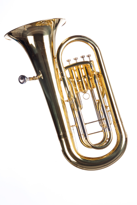 Image credit: A gold brass tuba euphonium isolated against a white background in the vertical format. Photo by mkm3, iStockphoto.