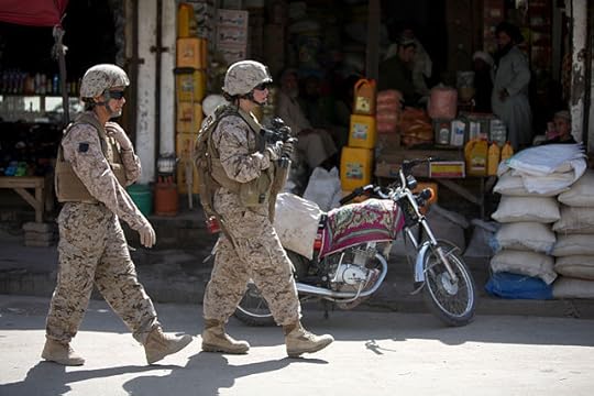 U.S. Marine Cpl. Mary E. Walls (right), an ammunition technician, and linguist Sahar (left), both with a female engagement team, patrol with 1st Battalion, 2nd Marine Regiment in Musa Qa’leh, Afghanistan, 2010. Walls and other female engagement team members patrolled local compounds around the district center to establish relationships with local people and talk with the women of the area in support of the International Security Assistance Force. Source: Cpl. Lindsay L. Sayres, U.S. Marine Corps: US Department of Defense.
