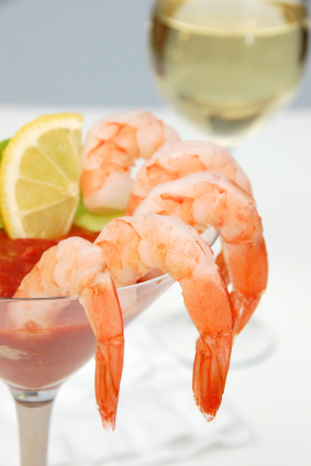 Image credits: (1) Young mother and her baby, sleeping in bed. Photo by SvetlanaFedoseeva, iStockphoto. (2) Shrimp cocktail elegantly served in a martini glass accompanied by a glass of white wine. Photo by sbossert, iStockphoto.