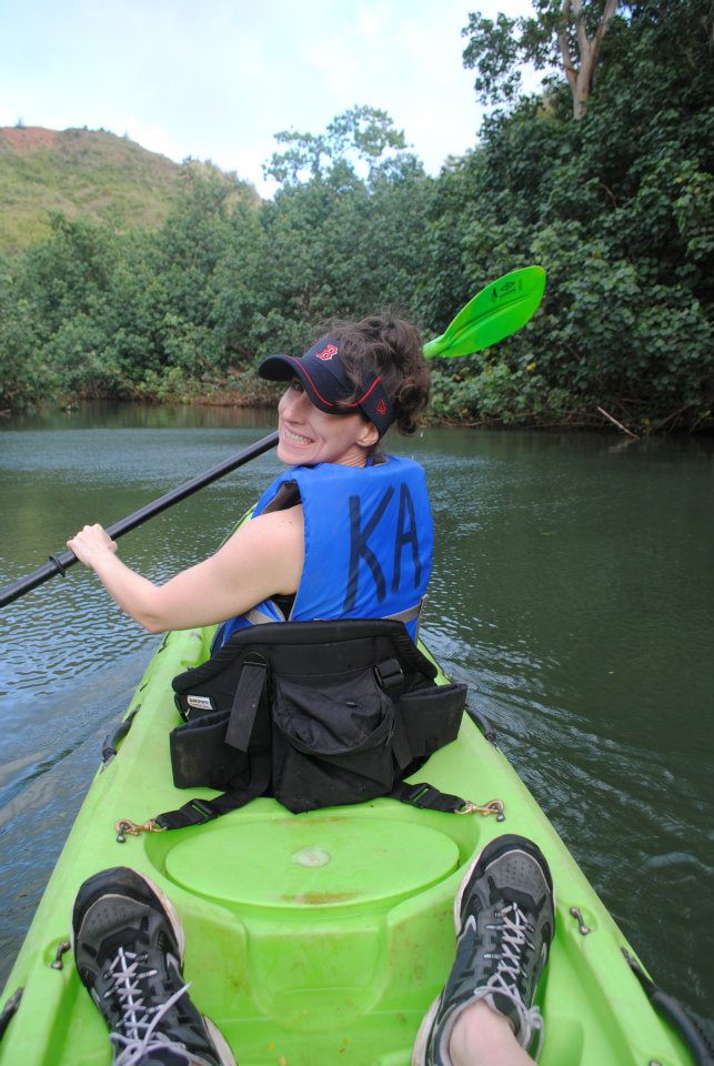 Here's the view from one of the restaurants at our hotel. Pretty nice, eh?And here's a shot of me kayaking down the Wailua River.