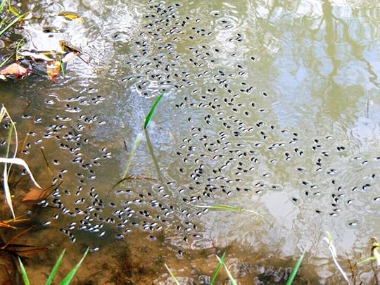You would think it wouldbe hard to miss this swarm of WhirligigBeetles frolicking about on the surface of a pond. But I did not noticethem until I was at the edge of the pond scanning for dragonflies. They weregoing about their frantic business in plain view but camouflaged by their sizeand their dark colour.