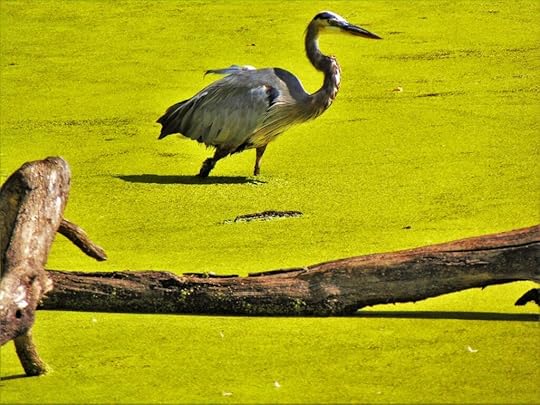 The Great Blue Heronstill stalks through the swamp in search of a meal and is quite happy to letyou watch. Life goes on there as it always has.