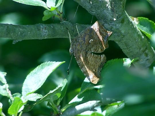 The Gray Comma pictured above, which for whimsical reasons of its own decided to perch upside down, was an exceptionally good sighting as – based on its colouration and flawless markings – it had clearly only recently emerged. It would reveal elegant inner wings coloured in a rich palette of brown, orange and yellow if it was inclined to spread its wings.