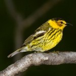 And the crowning glory of the spectacle, a very hard to find Cape May Warbler. Cape Mays are washed in sunlit yellow with black streaking and a chestnut face patch.
