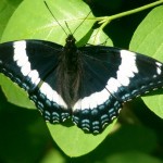 No mystery why White Admirals are so named. The broad, jagged white bar across the blue-black wing is unmistakeable. A reminder that simple black and white can still be exquisite – particularly when offset against the broad green leaves within which this specimen is cradled. The scalloped, checkerboard pattern on the wing edges is literally icing on the cake.