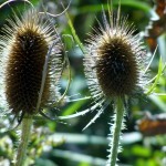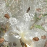 Even plants that are not blessed with colour are worthy of a lingering glance. The spiny barbs and curled tendrils of Common Teasel embroidered by afternoon sunlight… the soft white sprays and whirls of Milkweed gone to seed… the fossilized shadow of elm leaves against the ridged bark of a tree.