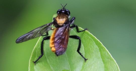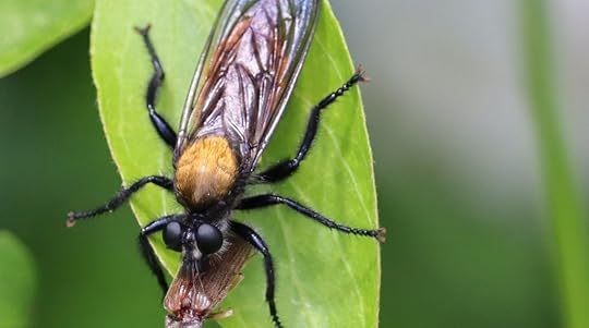 Best not to try and handle these ferocious critters as they will defend themselves and can inflict painful bites. They sometimes mimic bees as the Eastern Yellow-backed Laphria shown above does. But I am told their bite is a match for any sting.