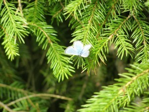 A Silvery Blue Butterfly. A beautiful specimen perched so cooperatively on the pine needles at Kortright Centre for Conservation. Not the most striking of butterflies. But etched in memory for… the contrasts of soft blue in its wings and vibrant green in the pine needles it rested upon… the subtle blend of background shadow and foreground sunlight… the subtle markings of its feathery antennae…