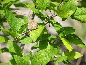 A Hickory Hairstreak Butterfly. Awaiting me at Pinery Provincial Park on the shores of Lake Huron. Etched in memory for… the mere fact it is so seldom seen… the thin but graceful spot band arching across the wings… faint blue spot enclosed by orange chevrons… cluster of broad green leaves like hands bent in prayer…