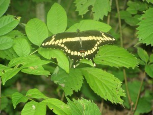 A Giant Swallowtail Butterfly. One of hundreds on Pelee Island in August. Etched in memory for… the flash of sun-yellow against silky black… graceful perfection of its curving, white fringed wings… the peacefulness of its nonchalant pose at the edge of a woodlot…