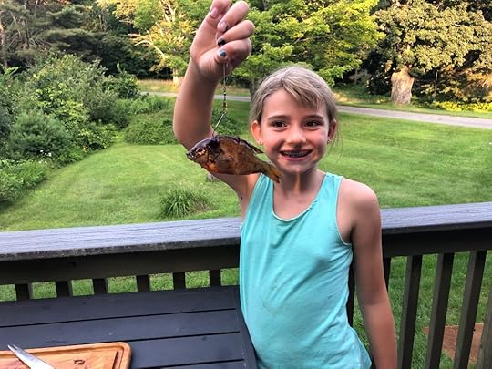 I heard another fish story recently from a family friend – something of a different sort than the stories told at the elite fly fishing class I had attended. This story starts on a recent July morning on a lake in Maine. The sky was blue and the lake’s surface smooth when nine-year-old Amaya and her younger cousin, Miles, awoke before the rest of the household for their fishing lesson. They were eager to join their grandfather, Ned, at the lake house dock for the annual family fishing day. This summer day, the sunfish were clearly visible near the dock and Ned was there to show his grandchildren how to bait a hook, cast the line, and wait for a bite. The family tackle boxes with the fancy lures were forgotten as wiggly worm after worm were added to the lines. The sunfish were hungry that morning and it was difficult to keep up with the constant sunfish bites. Ned was kept very busy removing the hook from the small fishes’ mouths and tossing them back into the lake.